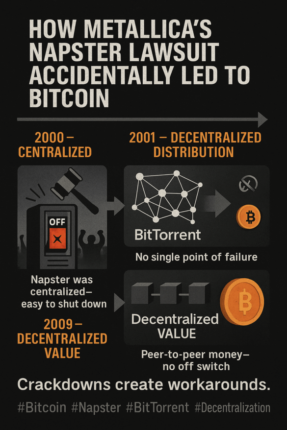 Here’s a spicy take: Metallica’s greed helped create Bitcoin. Back in 1999–2001, Metallica led the charge against Napster. One...